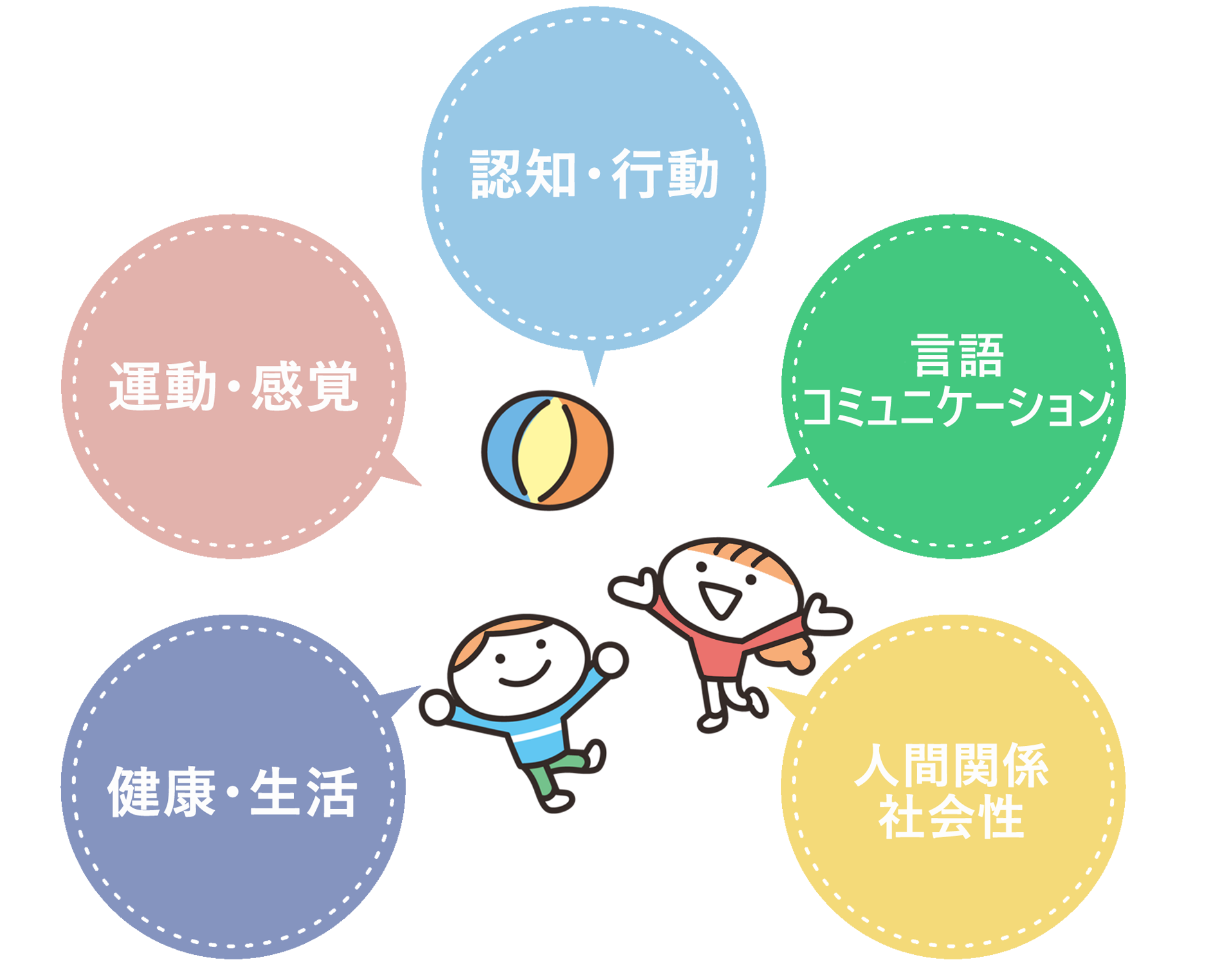 これら5領域の支援内容は、お互いに関連して成り立っており、重なる部分もあります。