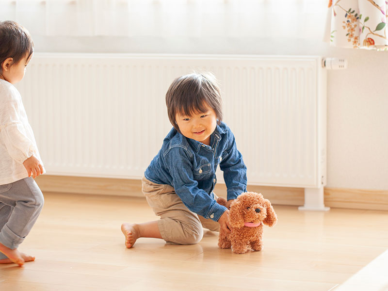 保護者やきょうだい、お友達など、幅広い世代と遊べるのもブロック遊びの特徴です。他者が作っている作品や自分が作っている作品を共通の話題にしたり、協力して一緒に作品を作ったりすることで、協調性やコミュニケーション能力を高めていくことができます。コミュニケーション能力は、日々の積み重ねから徐々に身についていくものです。特に幼児期は、コミュニケーションの基礎を作る時期になります。お友達や色んな年代の人とのやり取りができるブロック遊びはコミュニケーション能力を育むにも大変有効です。